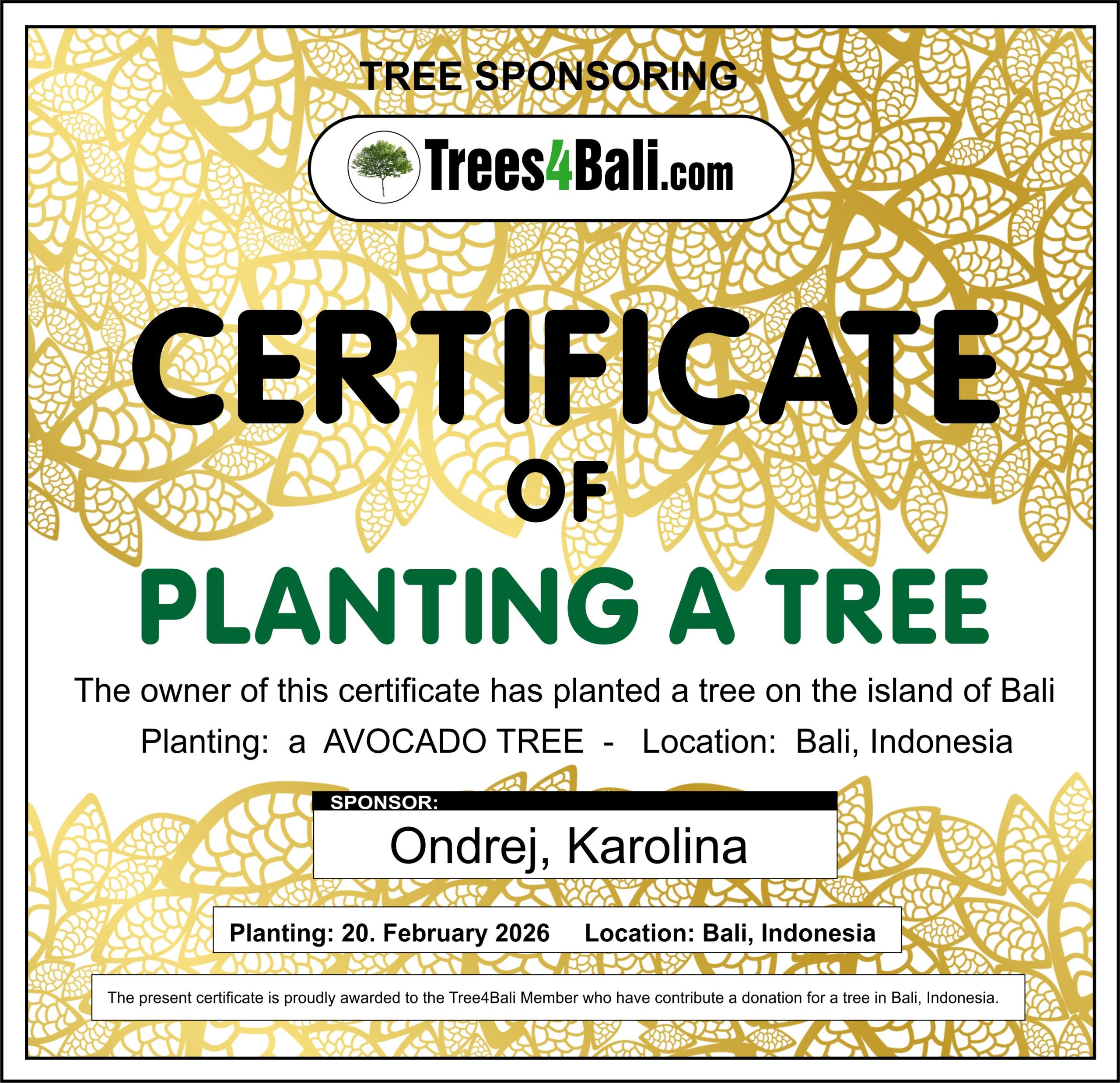 Via this address, you can then organize a visit to your tree on your next trip to Bali: